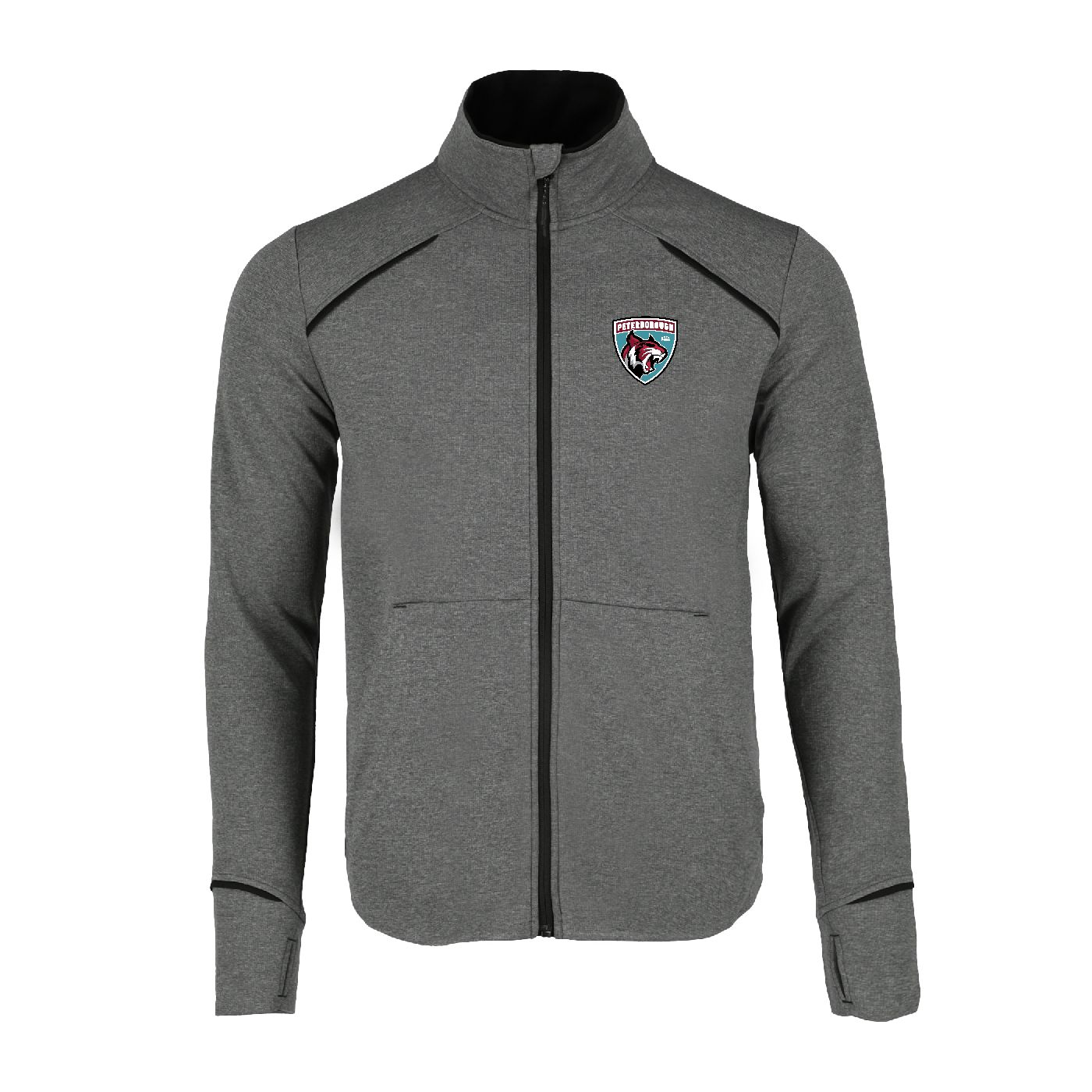 CONTRAST: 100% Polyester doubleknit birdseye mesh knit with wicking finish inner collar, zipper flap & piping.