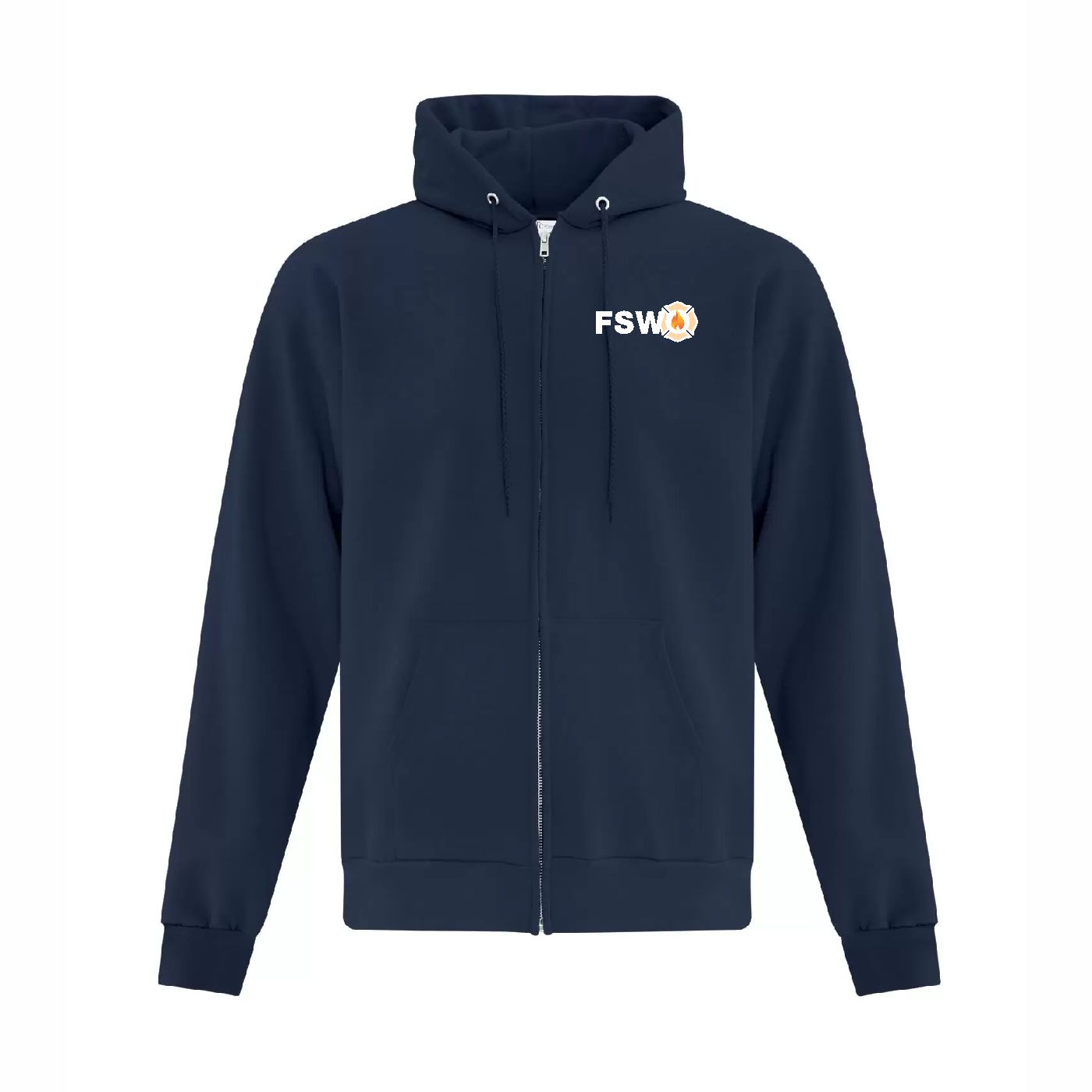 13-oz, 50/50 cotton/polyester fleece Compacted yarns to minimize shrinkage
