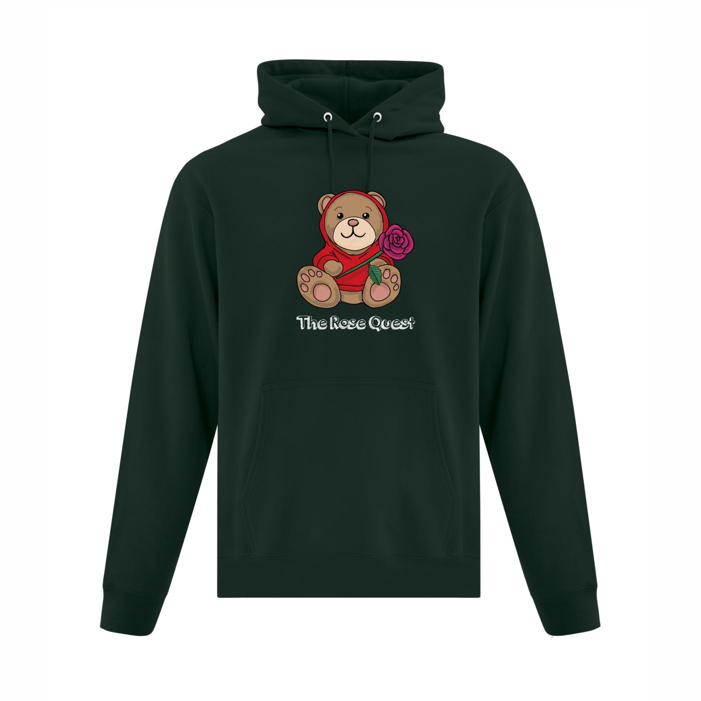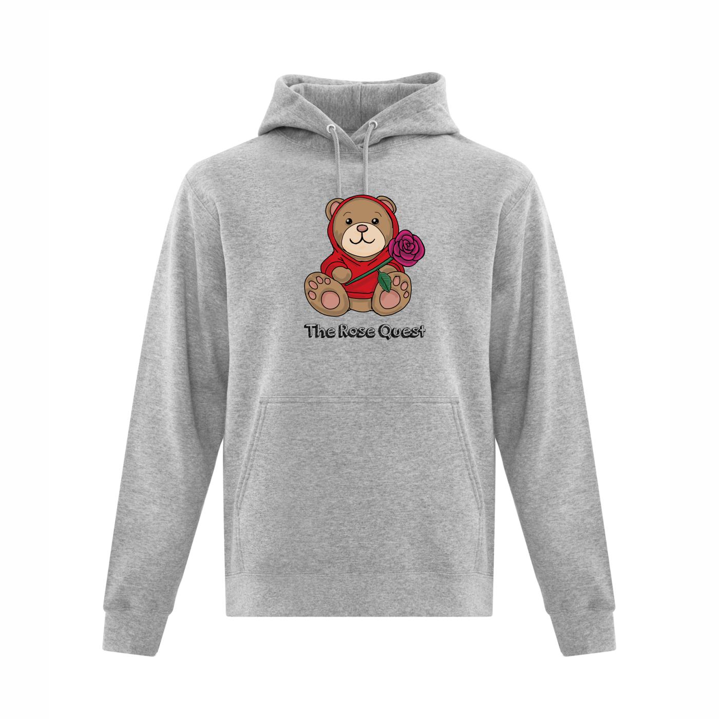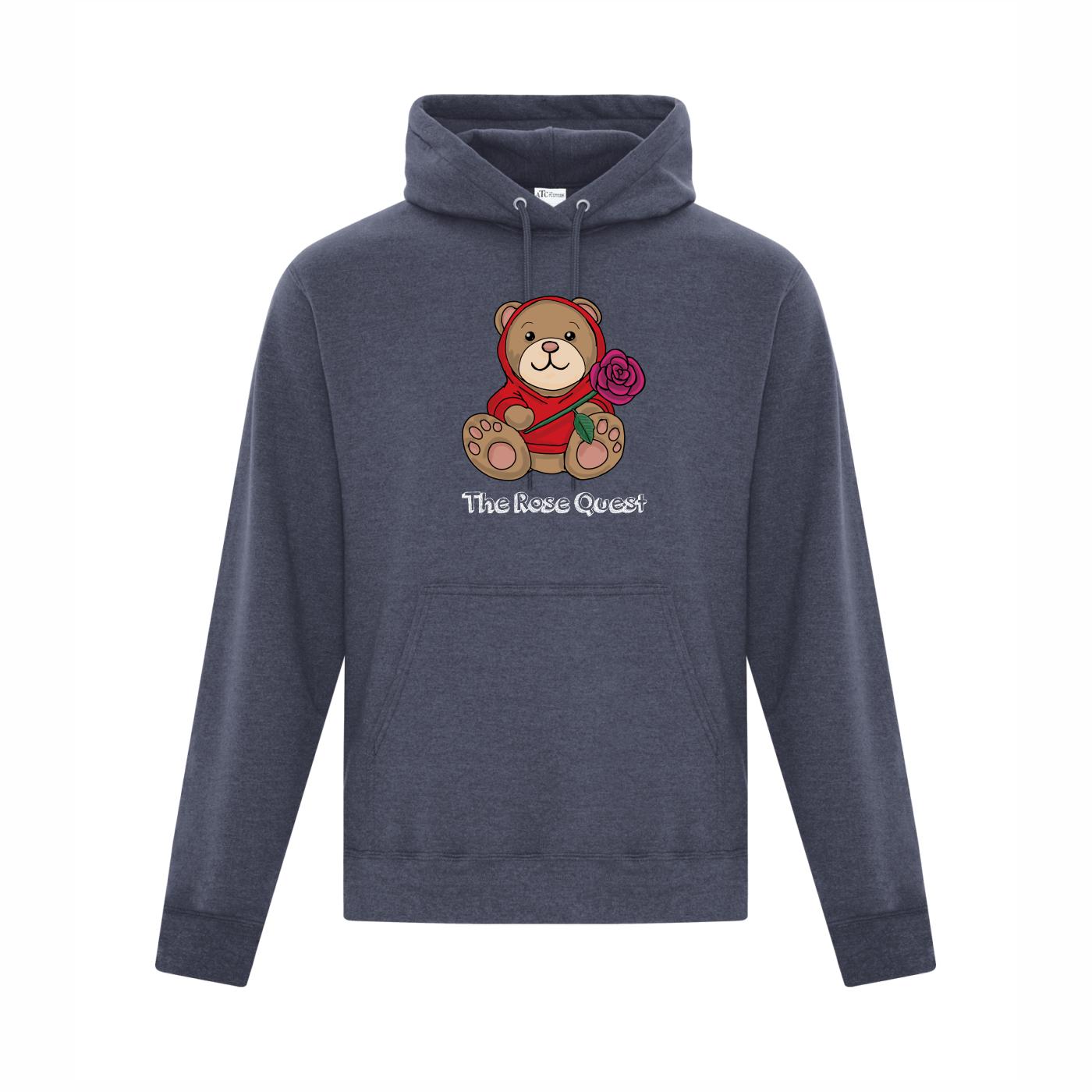 The everyday pullover hoodie is the perfect layering piece. Stay cozy and warm with this wardrobe staple with a convenient large front pouch pocket and a double lined hood. Featuring the Rose Quest “Uncle Bear” logo on the front of the sweater.