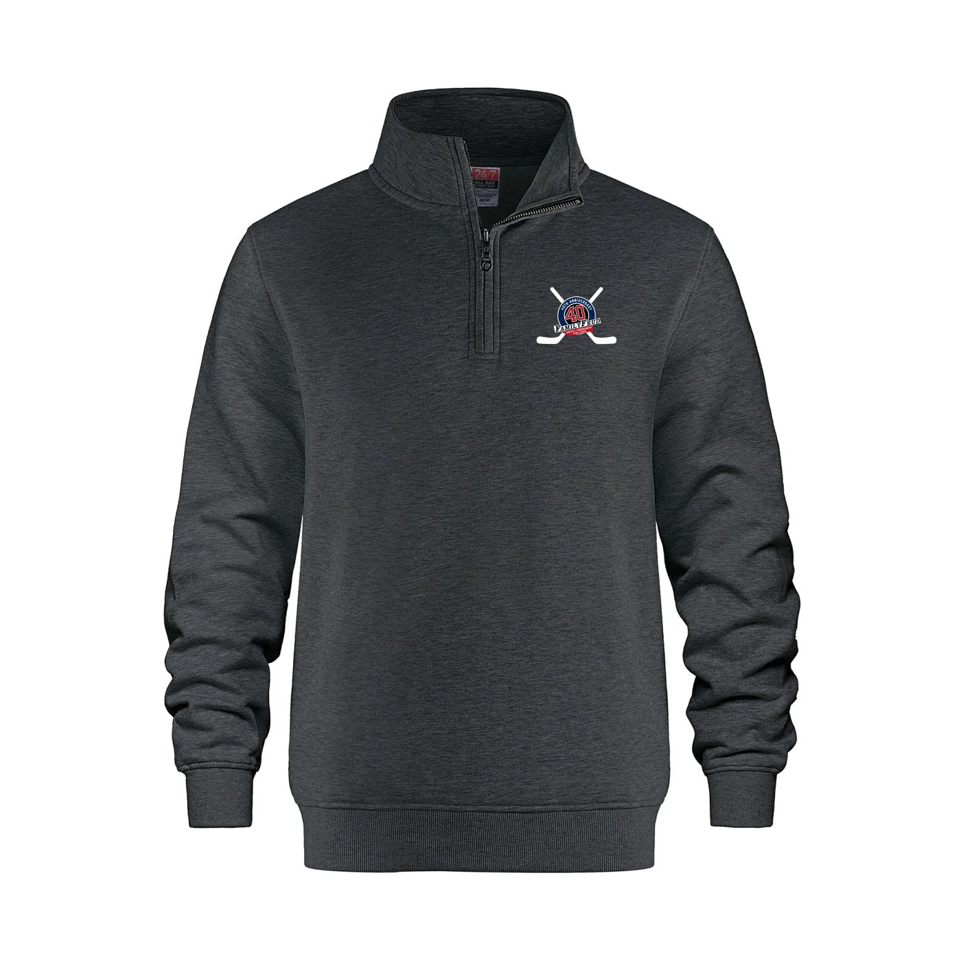 - Charcoal heather – 60% ring spun combed cotton, 40% polyester fleece